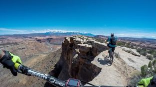 מצויד with a מצלמה, נייט הילס וחברו קייל מירס רוכבים על אופניים קרוב ככל האפשר לקצה צוק של 120 מטר במואב, יוטה. נשימה כמה יריות [...]