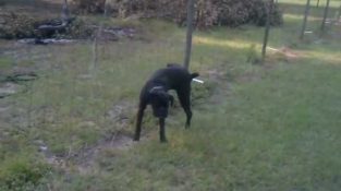 כלב על ידי מתח כוח קטן, כפי שהוא מנסה להפוך את הצורך על גדר חשמלית.