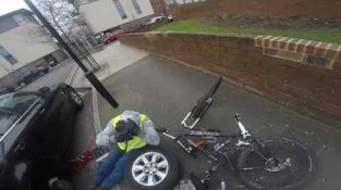 קריסות לרוכבי אופניים לתוך וידאו גבר מלא. מה F *** אתה עושה