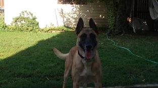 רועה בלגי בלגי מאומן במהירות לבצע הזמנות של הבוס שלו, מחכים בסבלנות כדי לשחק עם כדור.
