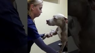 בשונה מרוב חיות מחמד, פיטבול מקסים זה הוא לא מפחד לווטרינר. מצד שני, קופץ על ספסל הבדיקה ולתת את רגליו רופא מחכה בסבלנות כדי לקבל דם.