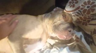 כלב תפס שינה כאשר בעלים חוזרים מהעבודה