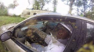 אדם חי חיים משותפים עם דבורים במכוניתו, לואיזיאנה