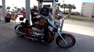 דן ולוגר פוגש את בעל אופנוע מרשים בתחנת דלק. לאופניים היו טורבו כפולה, HP נטר וכוח 1200. הצריכה שלה; 30 ליטר לכל 100 ק'מ.