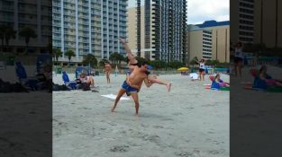 מירטל ביץ 'בדרום קרוליינה, , אלחנדרו ואת מרקוס לדגמן עם גופם גלגל ולשים במים. אחים תאומים עם שם הבמה 'האחים אימפקט' הם אקרובטים מקצועיים.