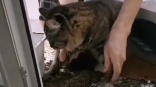 חתול מנקה את הנזק גרם
