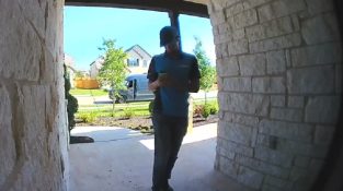 כשהוא יוצא מהמשאית שלו למסור חבילה, מפיץ של אמזון בארצות הברית שוכח למשוך את בלם החניה.