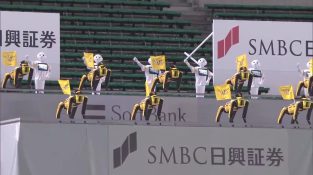 ביפן, הרובוטים של הספוט (דינמיקת בוסטון) ופלפל (רובוטיקה של סופטבנק) רוקד באוהל שהוצב ביציע במחצית משחק בייסבול בין פוקואוקה SoftBank הוקס לרקוטן איגלס.