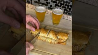 כריך עם באגט צרפתי, עוף טחון, עגבניות, בצל, שום, גבינה ורוטב ברביקיו.