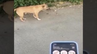 גבר ברוסיה בודק אפליקציה חדשה בשם 'מתרגם כלבים', ומאפשר למשתמש לתקשר עם כלב.