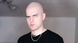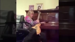 גבר מנסה לצלם וידאו בגיטרה שלו, אבל הכל משתבש כשהוא נופל מכיסאו בצורה מאוד מצחיקה.