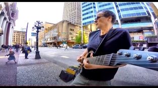 אדם בטורקיה מתקרב לכמה עוברים ושבים ונובח לעברם באמצעות חרוט תנועה, המשמש כמגבר.