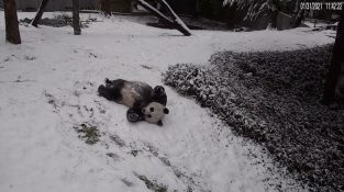 הענקים הם תמיד מיי שיאנג וטיאן טיאן, תיהני עם השלג בפארק הזואולוגי הלאומי של וושינגטון, ארה'ב.