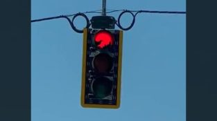 באור אדום של פנס בפלורידה, ציפור מאכילה את הצעירים שלה לאחר שהקימה קן בתוך הפנס.