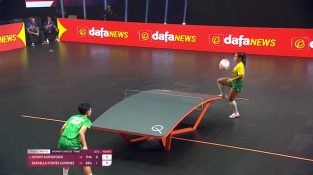 משחק מאליפות העולם בטקבול לנשים, ספורט שנולד בחמש השנים האחרונות ומשלב כדורגל עם טניס שולחן.