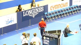 אביו ומאמנו של האתלט דנל לייבה (ארה'ב) עוקב אחר הביצועים שלו ומעודד לאחר סיום התרגיל. סרטון מהגמר הכולל באליפות העולם בהתעמלות אמנותית בלונדון ב-2009.