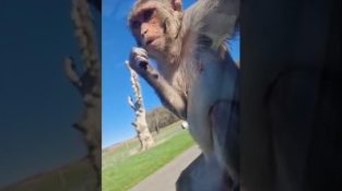 מקאק שהועלה לרכב של משפחה תיירותית, והשאיר טובה מרשימה -הפוך.