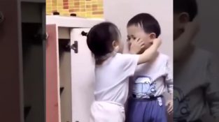 הילדה הקטנה הזו לא רצתה להכות את אחיה בדלת הארון, וברגע שהוא התחיל לבכות, הוא מיד ניחם אותו בנשיקה.