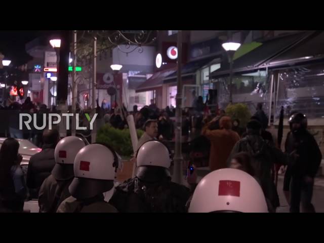 प्रदर्शनकारियों के लिए और शरणार्थियों के खिलाफ Oreokastro में सिटी हॉल के पास शुक्रवार की रात प्रकरणों के कारण परिणाम के साथ एकत्र हुए. दो समूहों और पुलिस के पत्थर फेंकने से टकराव रसायन के उपयोग में हस्तक्षेप किया और फ़्लैश ग्रेनेड क्लिक करें.