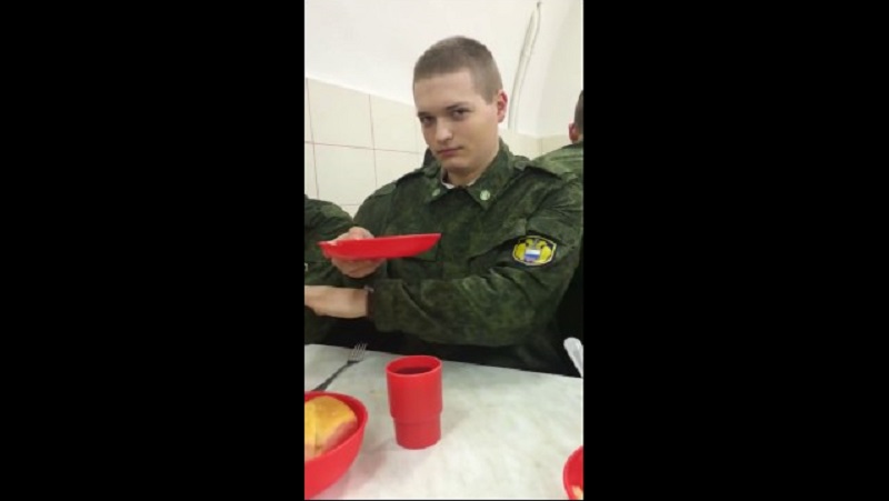रूस में एक सैनिक हमें आप एक मैश किए हुए प्लेट के साथ कर सकते हैं जादू दिखाता है, शिविर के रेस्तरां में.