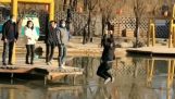 एक आदमी 136 किलो वजन द्वारा अड़चन हवा छलांग.