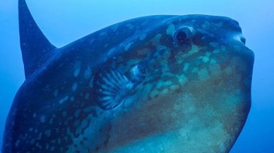 एक विशाल घाट प्रशांत महासागर गैलापागोस द्वीप के पास में एक पनडुब्बी को पूरा करती है.