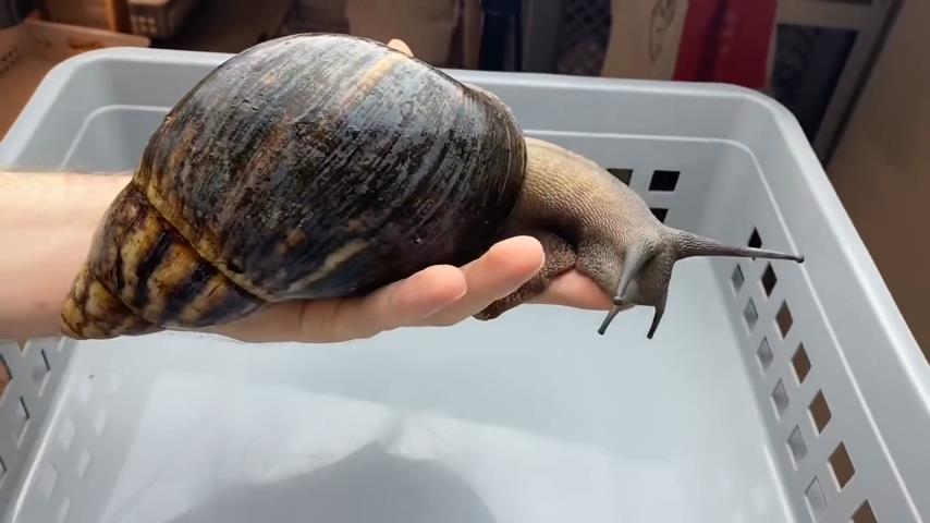 दुनिया के सबसे बड़े घोंघे के जीवन चक्र का त्वरित दृश्य, अर्चाचिना मार्जिनटा - डिंब उपप्रजाति. वे 20 सेमी तक लंबे और 10 साल तक जीवित रह सकते हैं. इन घोंघों का मूल निवास स्थान पश्चिम अफ्रीका है (कैमरून, डेमोक्रेटिक रीपब्लिक ऑफ द कॉंगो).