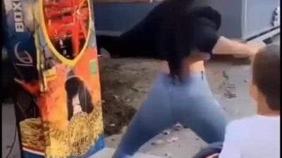 शैंपेन की बोतल पकड़े लड़की गिरती है.