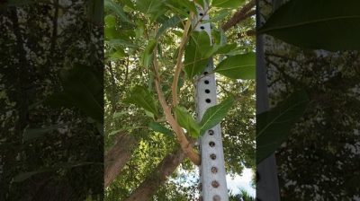 संयुक्त राज्य अमेरिका में फ्लोरिडा के डुनेडिन शहर में, किसी ने एक छोटे से पेड़ की खोज की जो धातु की प्लेट के आधार से उग आया था.