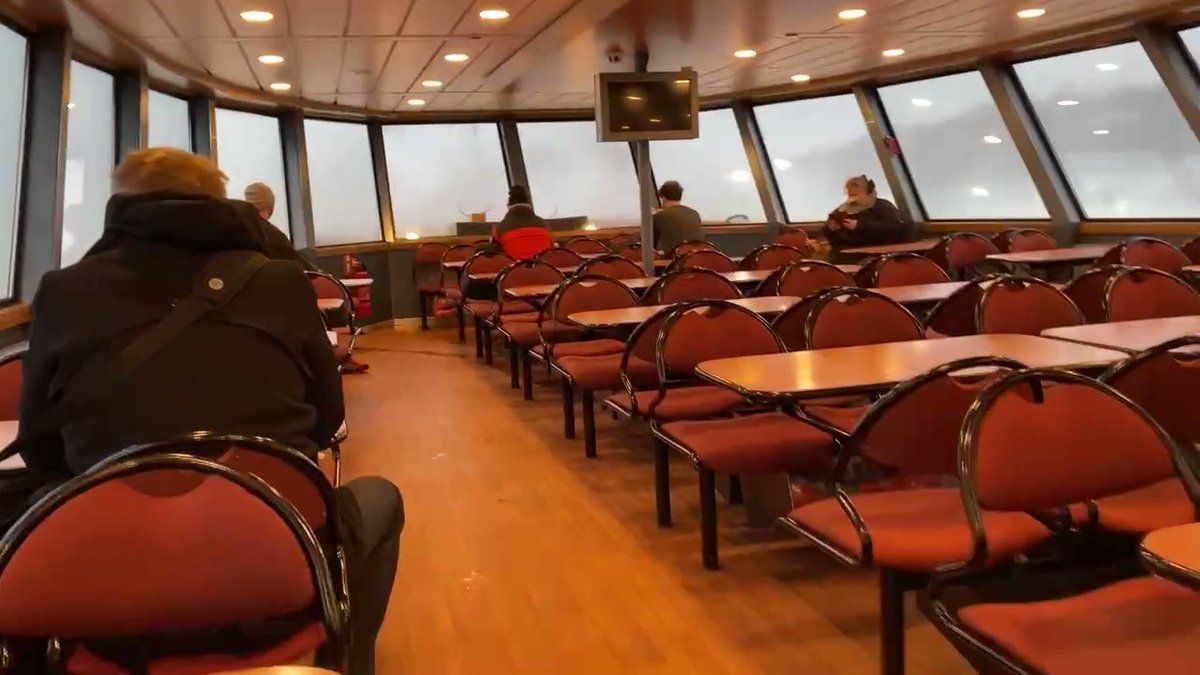 जर्मनी में हैम्बर्ग के बंदरगाह में गुरुवार 17 फरवरी 2022 को तूफान येलेनिया के दौरान, एक लहर हिंसक रूप से एक नौका के सामने से टकराई और खिड़कियां तोड़ दीं.