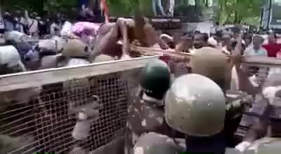 कीव, यूक्रेन में, एक आदमी एक ट्राली के पीछे सीढ़ी पर पकड़ा गया है. वह कई देर तक जमीन पर रेंगता रहता है....