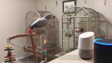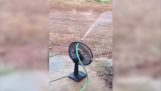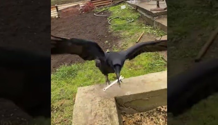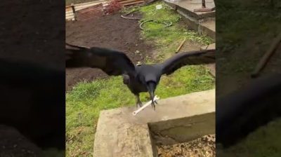 गोशा कौवा एक रिंच लाकर एक अप्रेंटिस की मदद करता है, Lysva, रूस में एक बगीचे में.