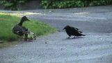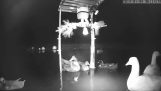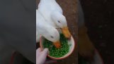 बत्तख एक सुखद सिर की मालिश का आनंद लेती है.