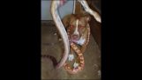 एक साँप कॉलर के साथ एक पिटबुल