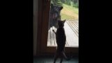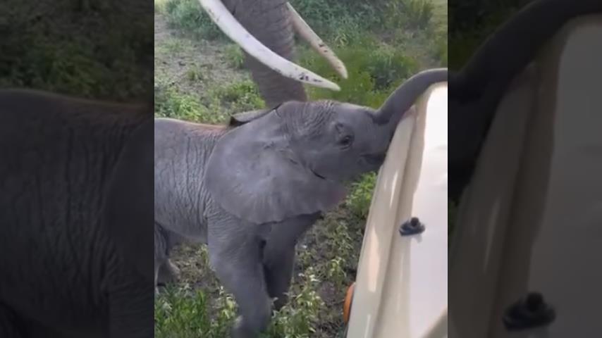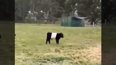 एक बछड़ा जिसके कोट और उसकी माँ में एक अजीब रंग है, वे कंधे से कंधा मिलाकर आते हैं.