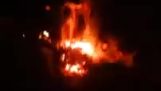 के बाद एक टायर अचानक आग लग जाने से एक बस यात्रियों से भरा आग की लपटों में फट, एक घायल. विडीयो मे, वहां फिल्माया...