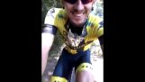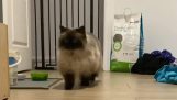 एक बिल्ली एक और आवारा बिल्ली द्वारा शिकार की गई, उसके दोस्त को चिल्लाते हैं कि मदद के लिए कुत्ता घर के प्रवेश द्वार पर आता है.