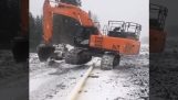 एक पहिया खुदाई के साथ थोड़ा संघर्ष के बावजूद
