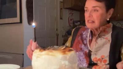दादी ने अपने जन्मदिन के केक पर एक फैंसी स्पर्श डालने की कोशिश की.