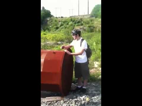 जब एक पत्थर से मारा हथियारों लेजर ध्वनि बाहर खींचता एक बड़े धातु ट्यूब.