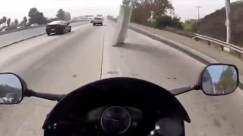 ένας ασυνείδητος μοτοσικλετιστής προσπάθησε να προσπεράσει ένα φαρδύ τροχόσπιτο πάνω σε μια στροφή...