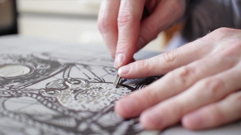 Linografia 'प्रति पत्रक linoleoym से बनाया का एक प्रकार है (कैनवास), जो उभरा होता डिजाइन में कटौती. उभरा gravure फिर एक मुद्रण cliches के रूप में मुद्रण के लिए उपयोग किया जाता है.