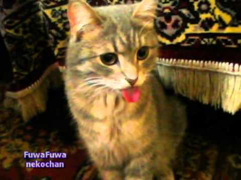 एक बिल्ली सहज उसकी जीभ बाहर खींचती, जब वह एक स्कॉच टेप की आवाज सुनता.