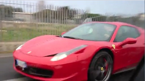 वह गीले में हावी करने के लिए कोशिश करता है के रूप में एक फेरारी F458 इटली के लिए गाइड को नष्ट कर.