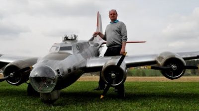 पौराणिक द्वितीय विश्व युद्ध बॉम्बर, रिमोट नियंत्रित स्केल मॉडल 1 . में:5,6 एल्यूमीनियम शरीर के साथ. यहाँ अपनी पहली उड़ान बनाता है.