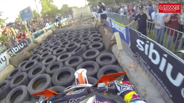 Enduro चैंपियन, जॉन वॉकर, रोमानिया के सिबियु में रोमानियाक्स 2013 रेस में अपना टेस्ट रन रिकॉर्ड किया. प्रतियोगियों की तरह पेड़ चड्डी बहुत मुश्किल बाधाओं के माध्यम से जाना है, टायर और बड़ा पत्थर.