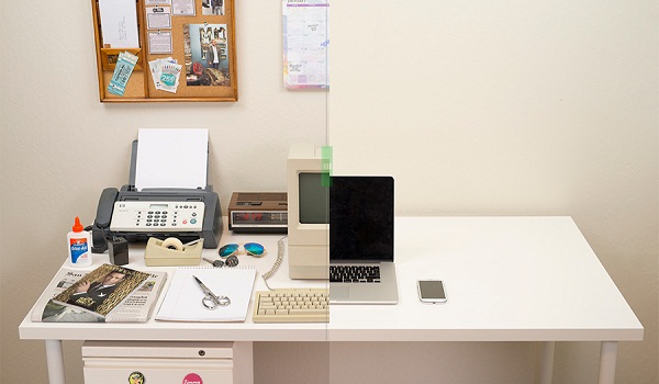 कैसे हमारे कार्यालय समय के साथ बदल गया है; पूर्व में एक बड़ा CRT स्क्रीन कंप्यूटर था, फ़ैक्स डिवाइस, कैबिनेट फ़ाइलों, नोट्स, आदि।. आज, प्रौद्योगिकी के लिए धन्यवाद, मंत्रिमंडल की सतह एक लैपटॉप और एक स्मार्टफोन के साथ बहुत अधिक लाइसेंस है. हार्वर्ड विश्वविद्यालय नवाचारों प्रयोगशाला में छात्रों द्वारा वीडियो बनाया गया था, हमारे जीवन पर प्रौद्योगिकी के प्रभाव पर जोर देना. वीडियो की एक उत्पादन है सबसे अच्छी समीक्षाएँ.
