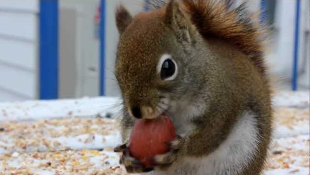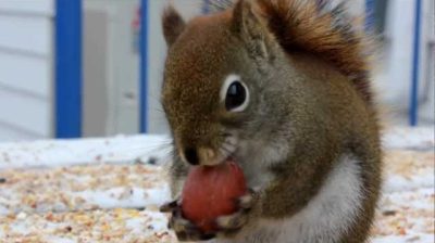 एक गिलहरी एक हेज़लनट कुछ के रूप में अजीब शोर बनाता है.