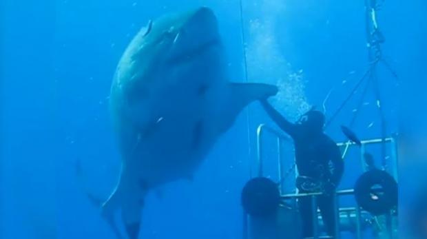 द्वीप ग्वाडालूप के पास मेक्सिको में, अन्वेषक Mauricio Hoyos Padilla फिल्म एक दुनिया में सबसे बड़ी सफेद शार्क के लिए कर रहा था. गहरी ब्लू शार्क की दुनिया में एक कथा है. वह 6 मीटर की लंबाई और लगभग 50 साल की उम्र के साथ एक महिला सफेद शार्क है. वीडियो में आप देख सकते हैं गहरी एक सुरक्षात्मक पिंजरे गोताखोरों के आसपास भटक के लिए ब्लू. उनमें से एक को उसे छूने की हिम्मत होता.