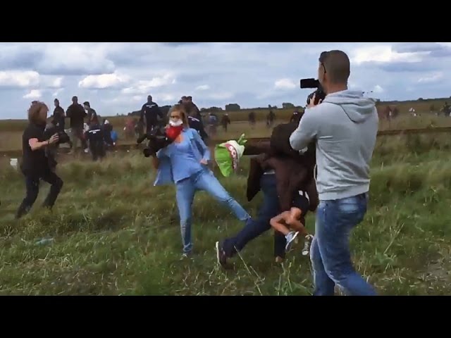 दक्षिणी हंगरी के Röszke में, tripping के एक शरणार्थी जो उसके हाथ में एक छोटे बच्चे के साथ एक पुलिस घेरा से पलायन करने के लिए कोशिश कर रहा था करने के लिए रिकॉर्ड किया गया एक कैमरामैन डालता है. एक ही रिपोर्टर भी kicks युवा शरणार्थियों को देने के लिए एक और स्नैपशॉट में पाई गई. कैमरामैन जो हंगरी टीवी स्टेशन N1TV के लिए काम किया वीडियो के प्रकाशन के बाद निकाल दिया गया था.